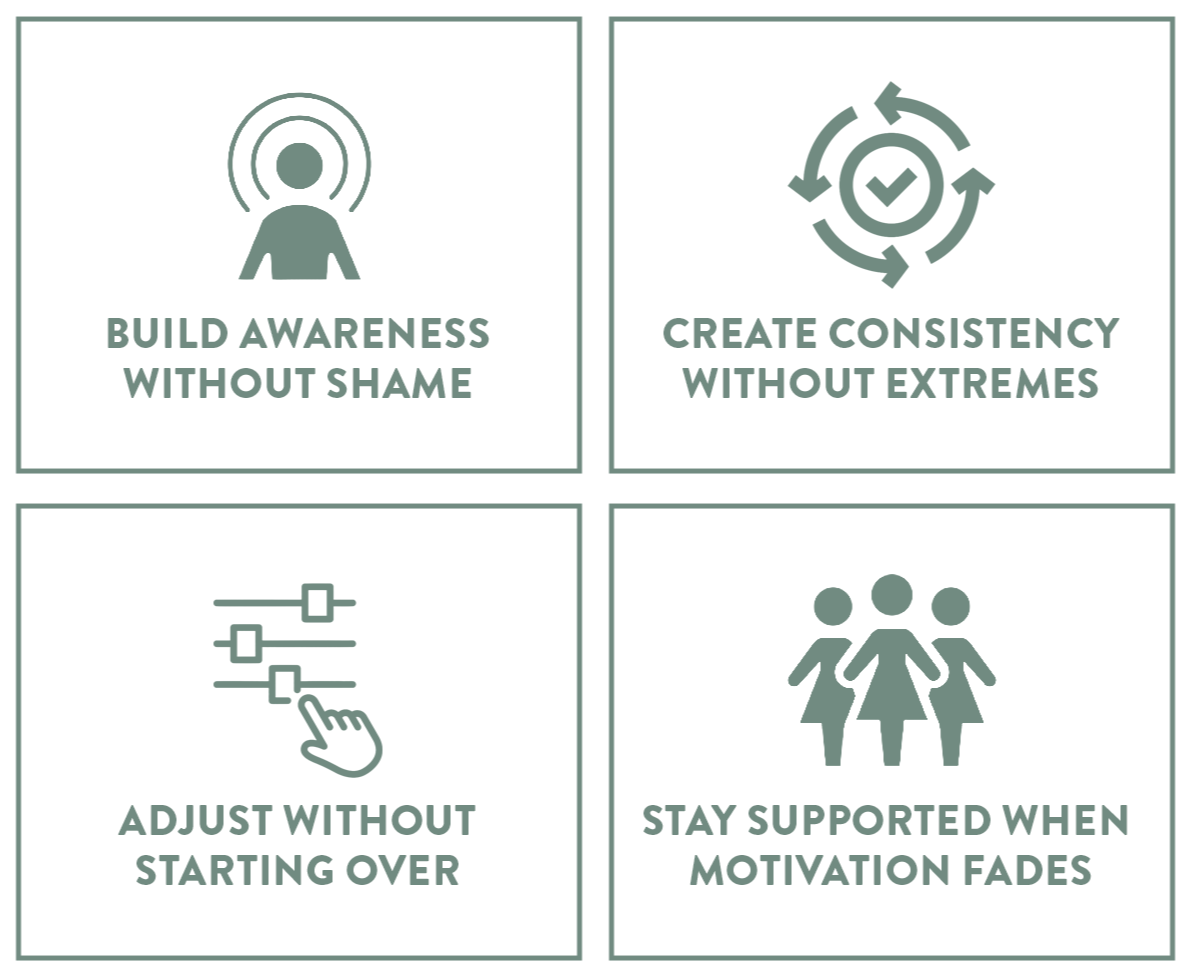 It is a method and a system designed to help you build sustainable habits with clarity and support that evolve throughout every season of your life.